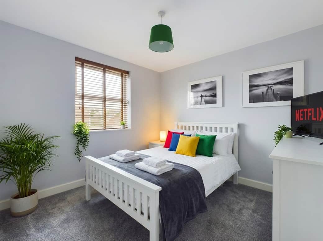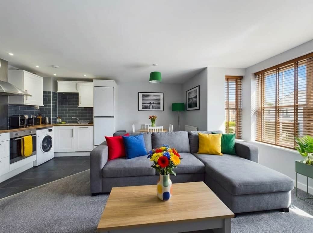 A bright, modern 2-bedroom apartment perfect for contractors, professionals, families, NHS staff, and long-term stays. Flexible sleeping (2 X Double Bed + Sofa bed) makes it ideal for teams needing space and comfort.
